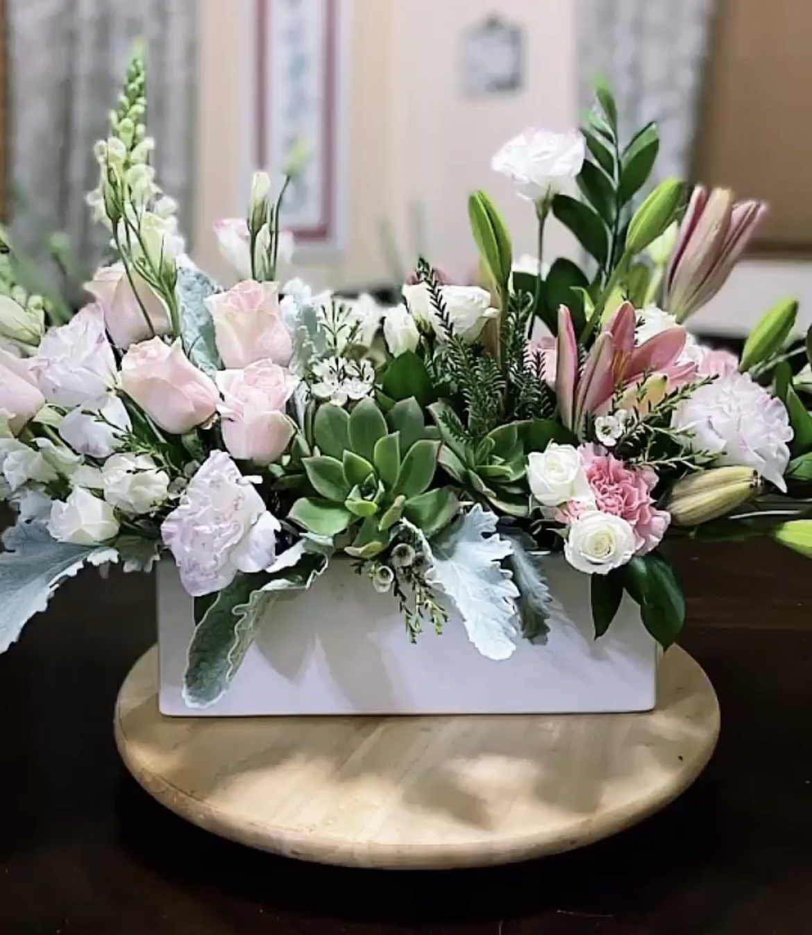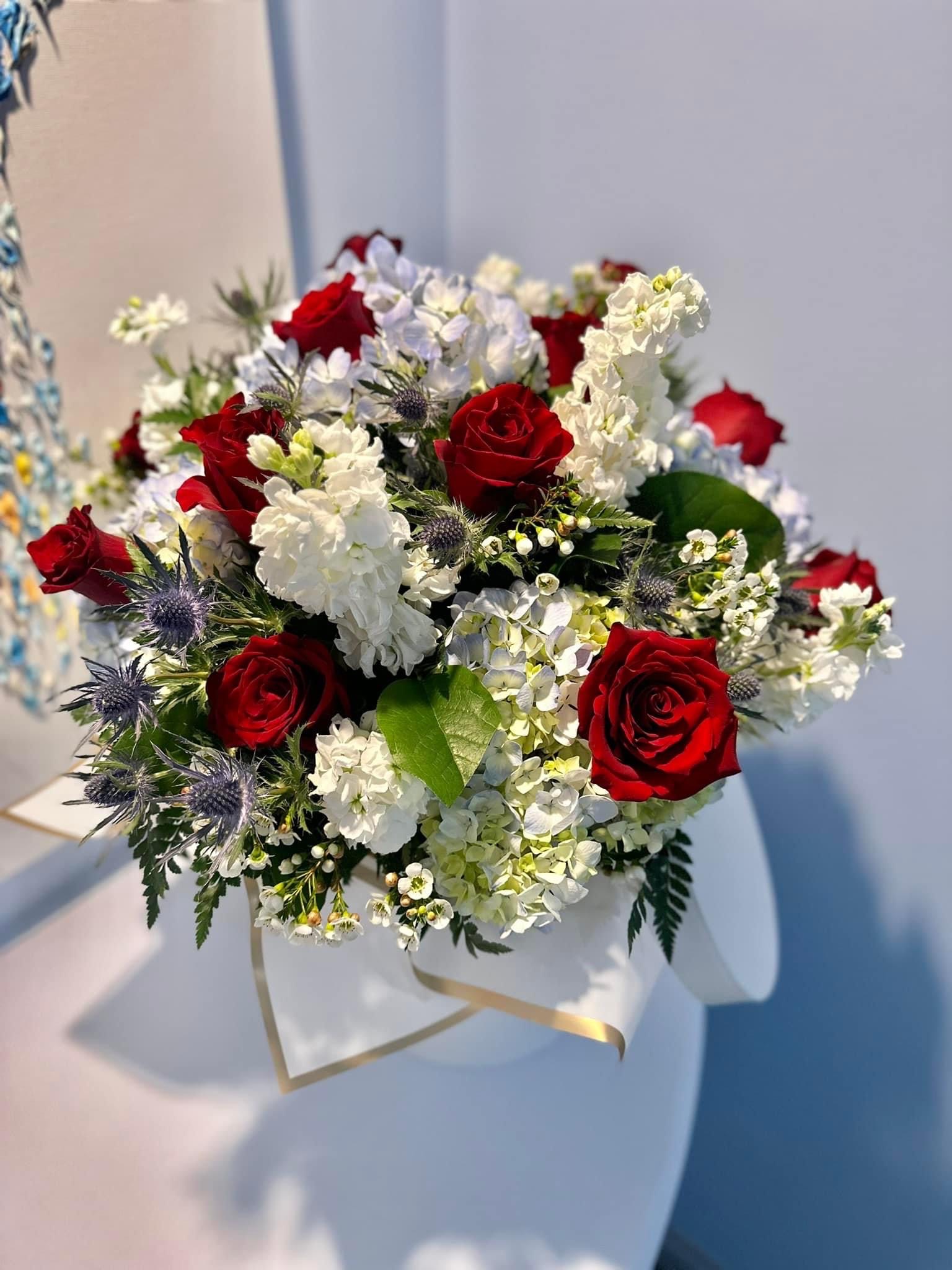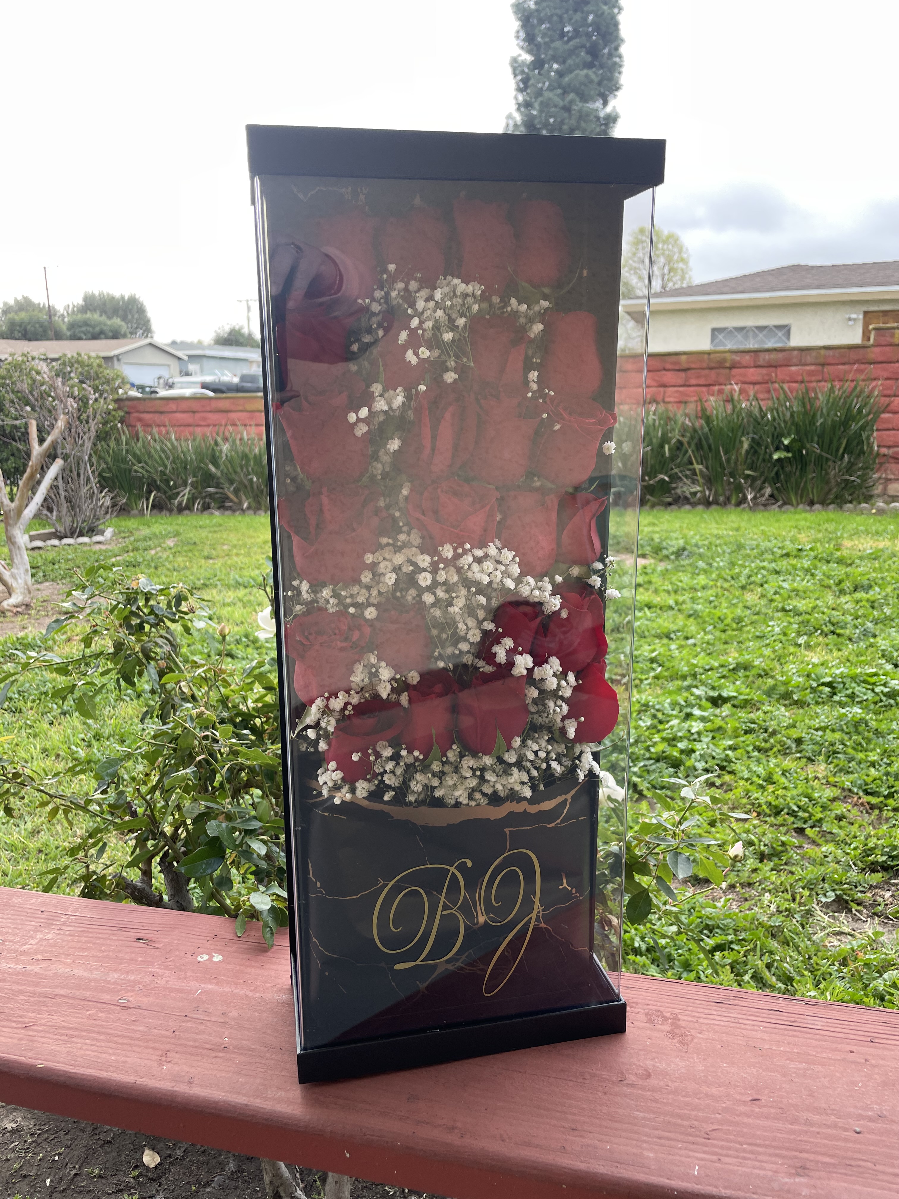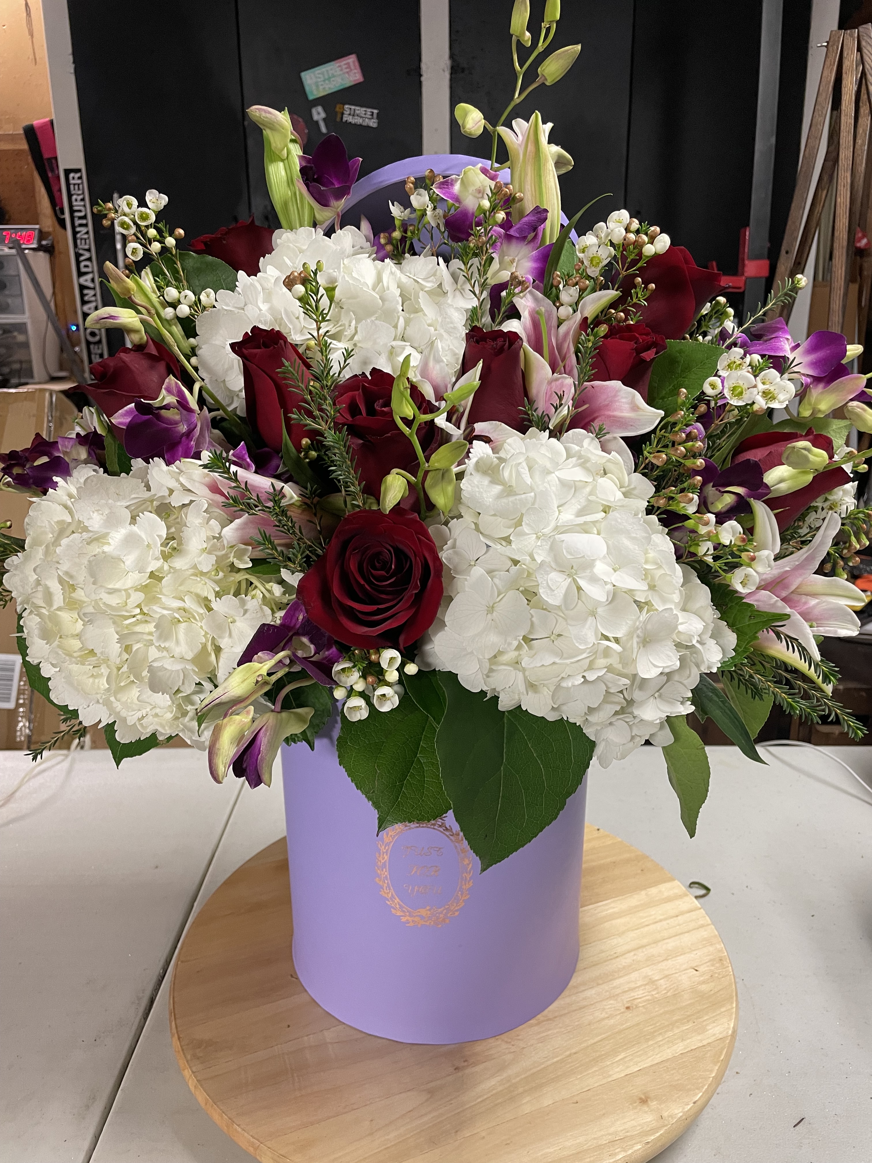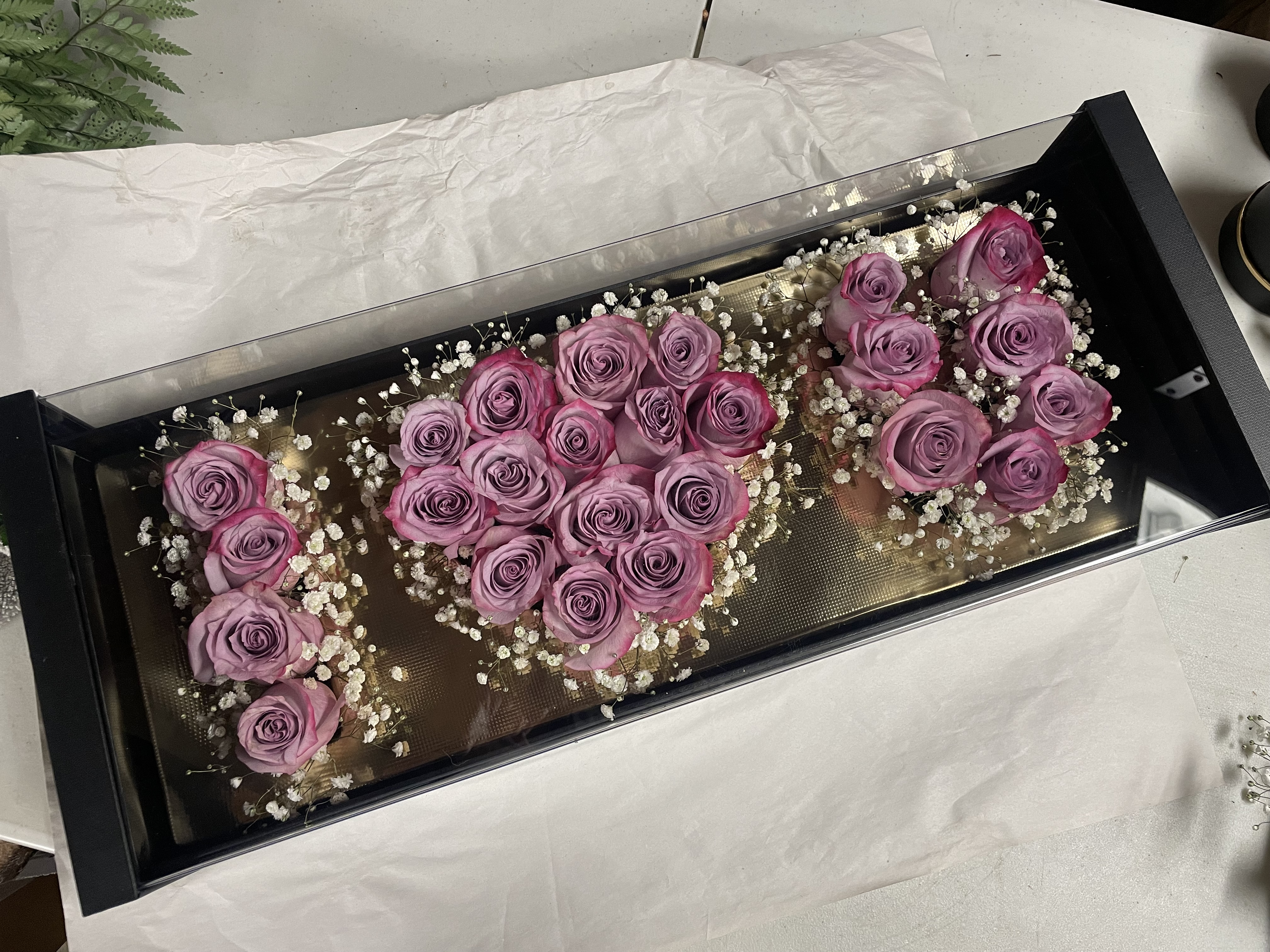 Elegant long stem roses with greenery & baby’s breath. Arrangements begin at 1 dozen roses, please feel free to specify the amount of roses you want. Optional finishes: beautifully wrapped with tissue paper or furnished in a beautiful vase.