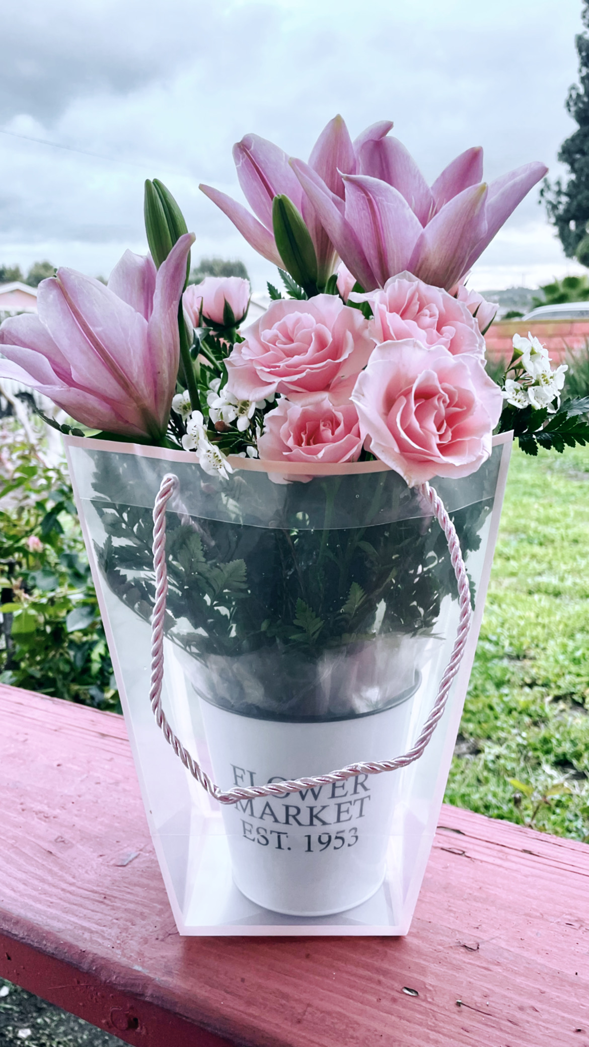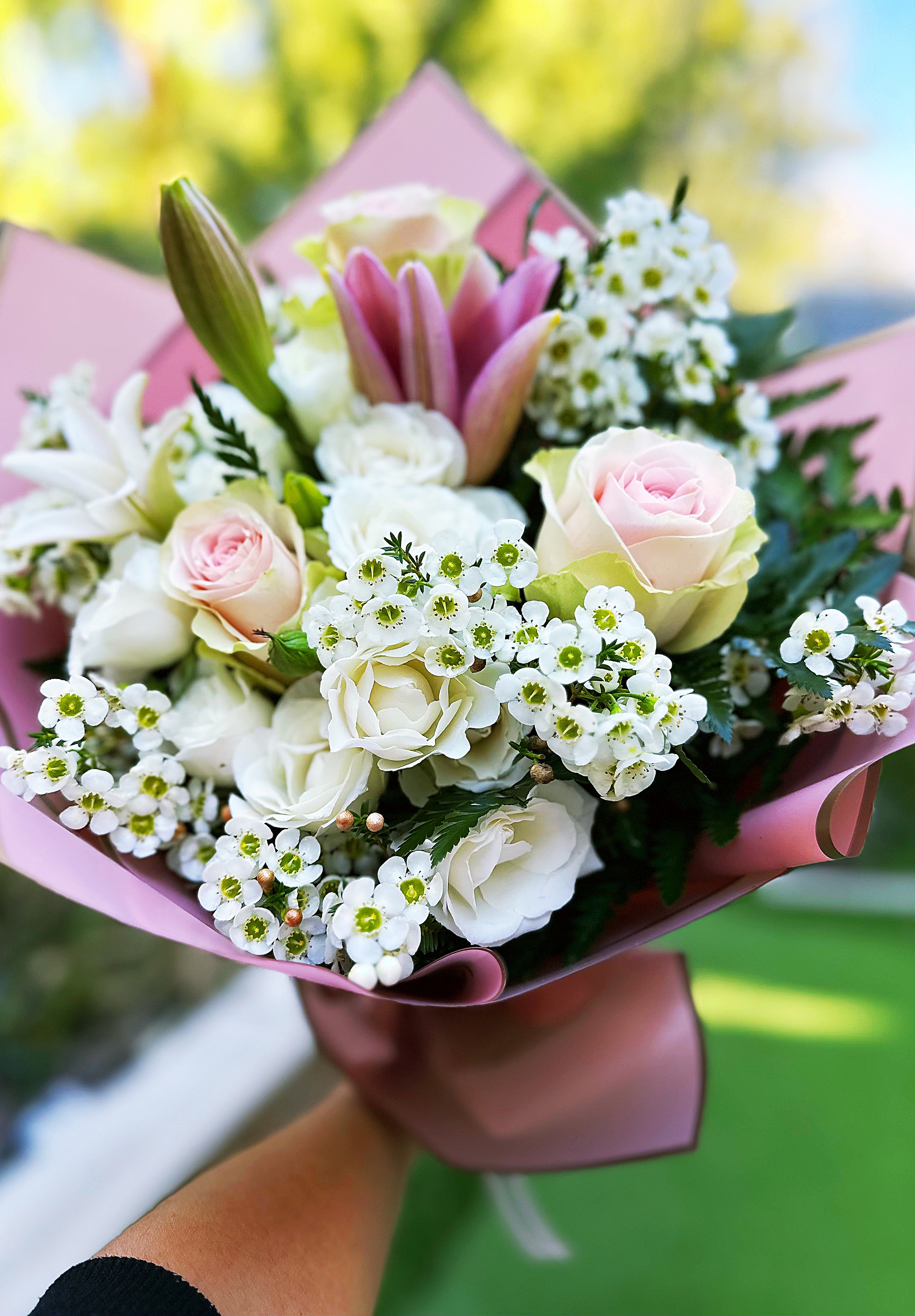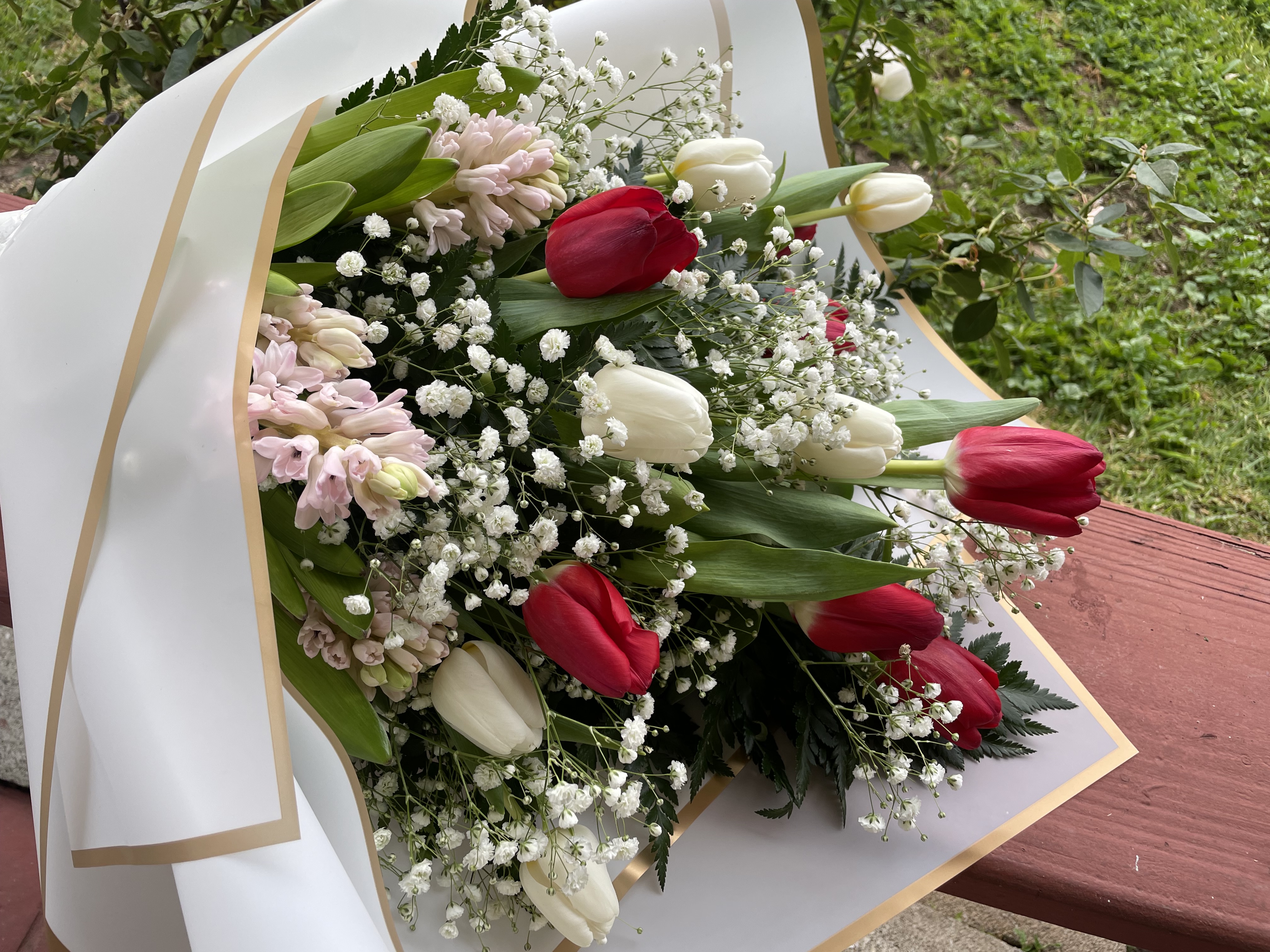 Mix floral bouquets. Optional finishes: beautifully wrapped with tissue paper or furnished in a elegant vase or basket.
