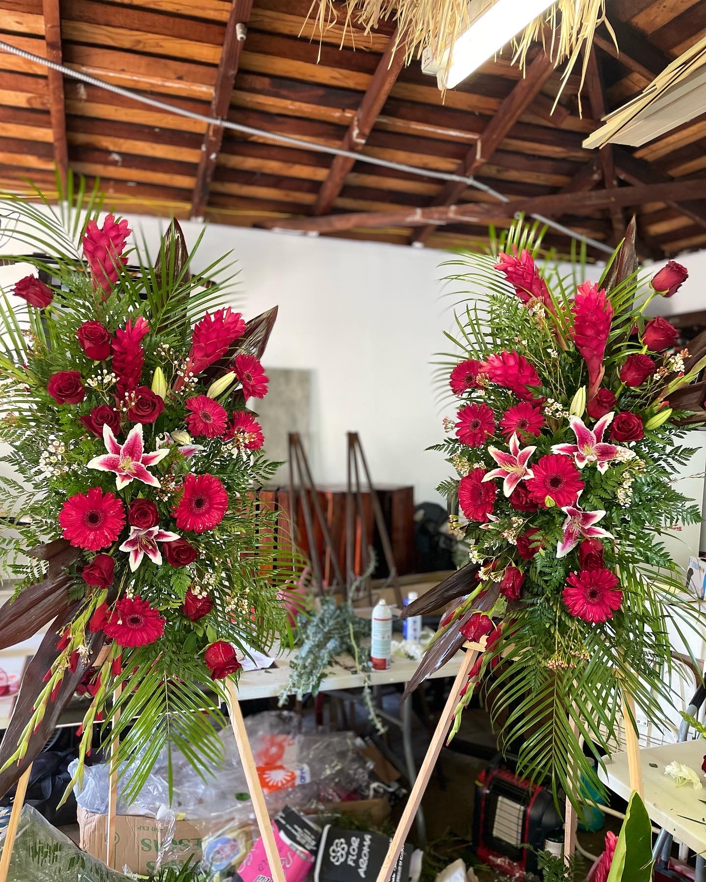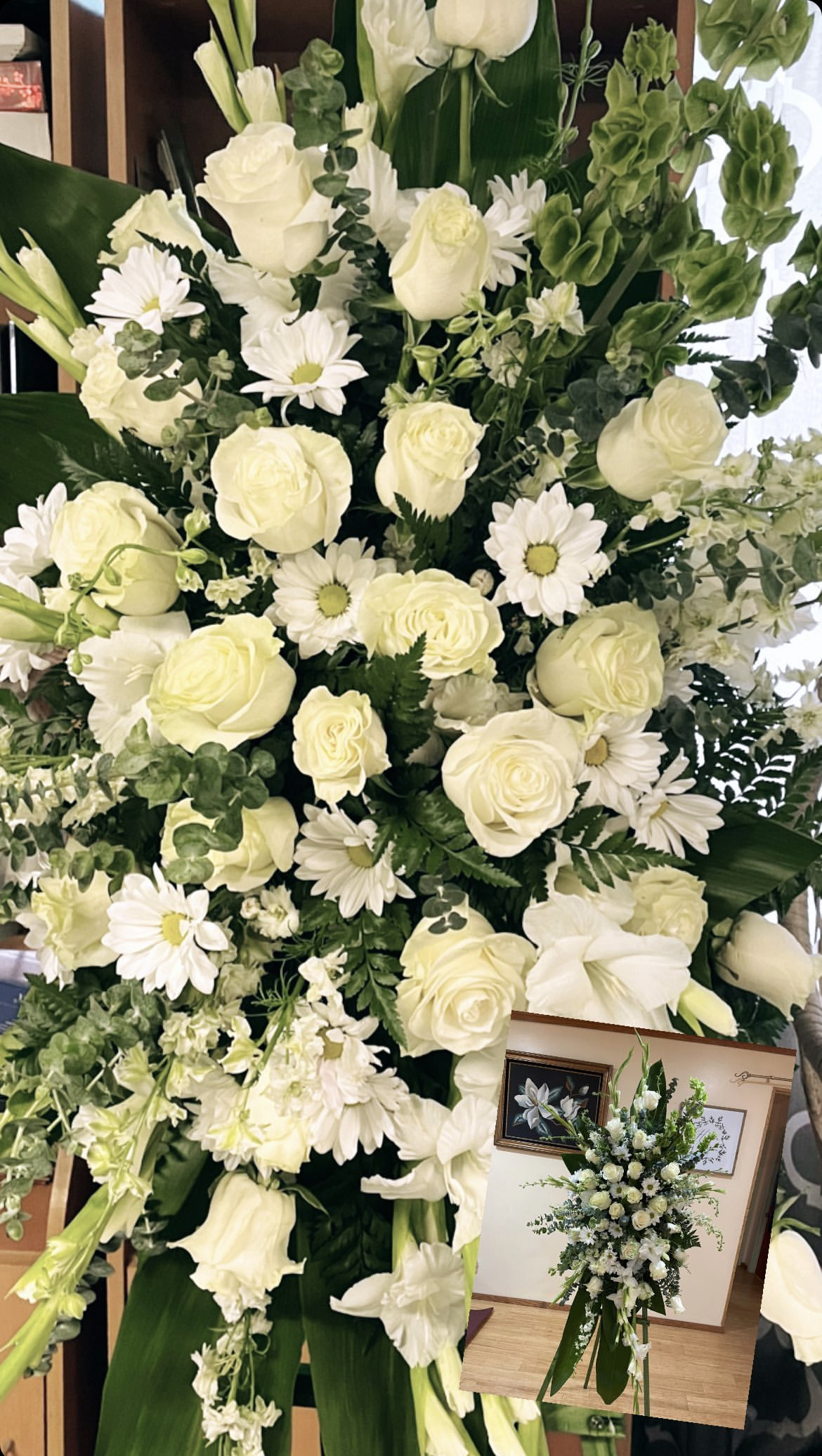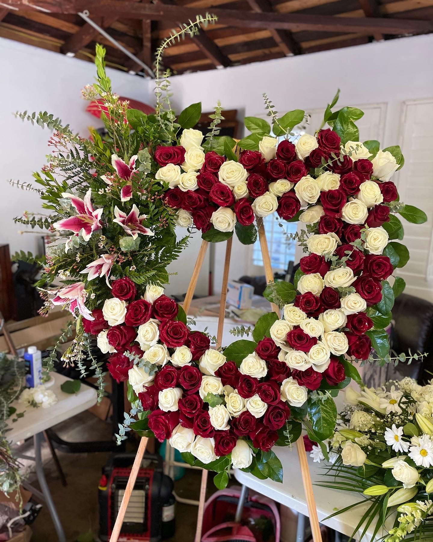 Honor the memory of your love one with this beautiful display bouquet. Designed to surround your favorite photo. This bouquet features, red roses, lilies and red Gerber daisies and lush greenery. Arrangement does not include picture frame. Colors and floral can be personalized to your request if available. We only use the freshest flowers available so varieties and colors vary due to local and seasonal availability.