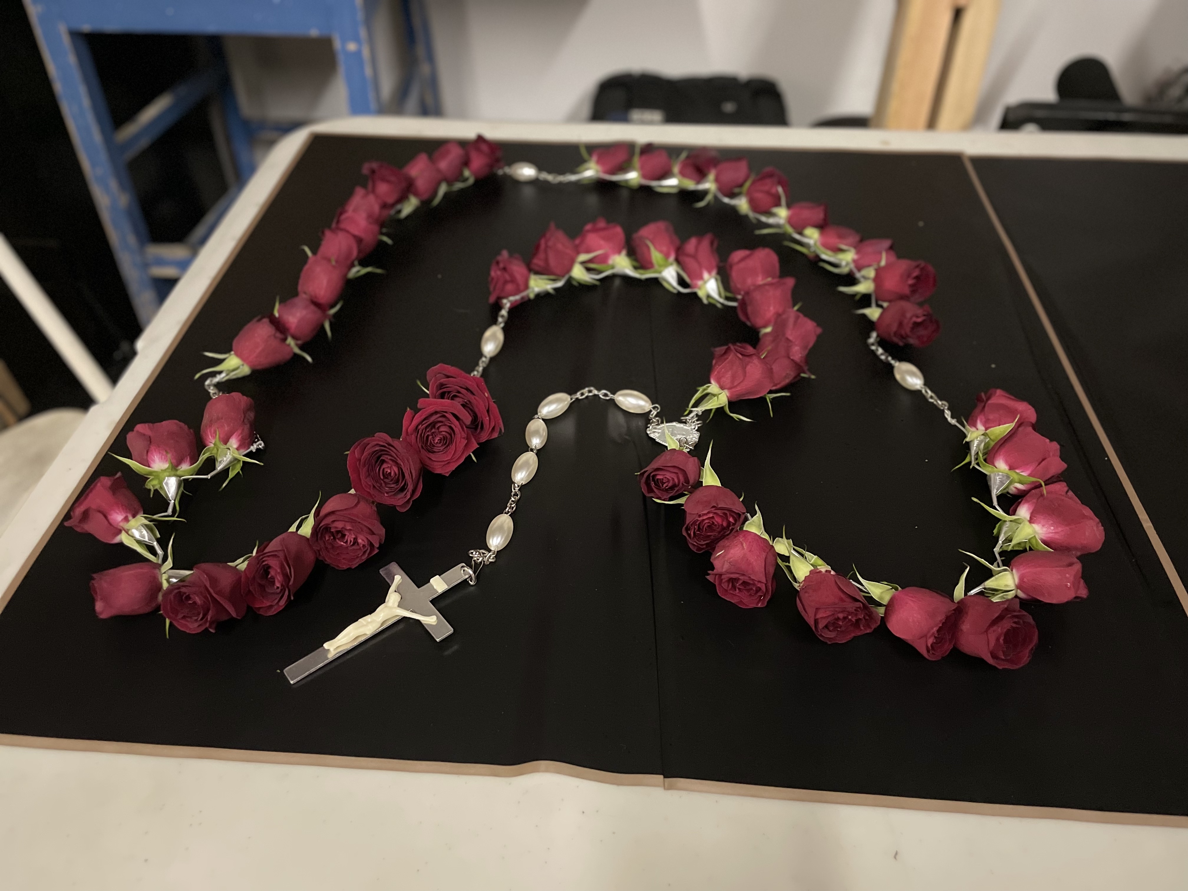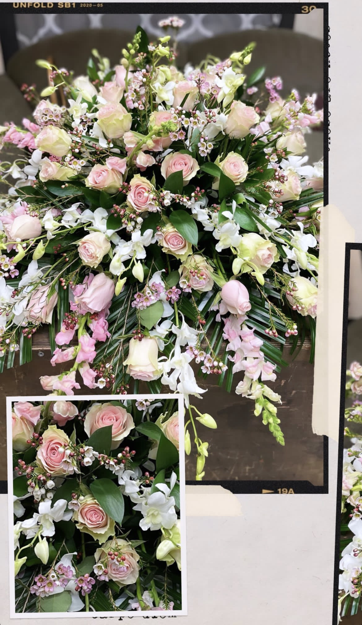 Flowers can be added to several items to commemorate your loved one. Please contact us with the items you have in mind and we can let you know what is possible. Pictured here are the Rose Rosary and Heart Casket Insert.